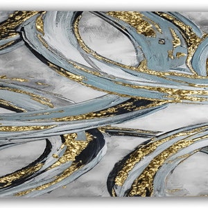 This original hand-painted artwork features shimmering silver accents layered over cool blue and gray tones, creating a striking textured abstract design. The piece blends modern elegance with organic flow, making it a versatile statement for contemporary living rooms, bedrooms, or office spaces. Each painting is made to order, signed by the artist, and crafted with attention to detail for a one-of-a-kind addition to your home.
