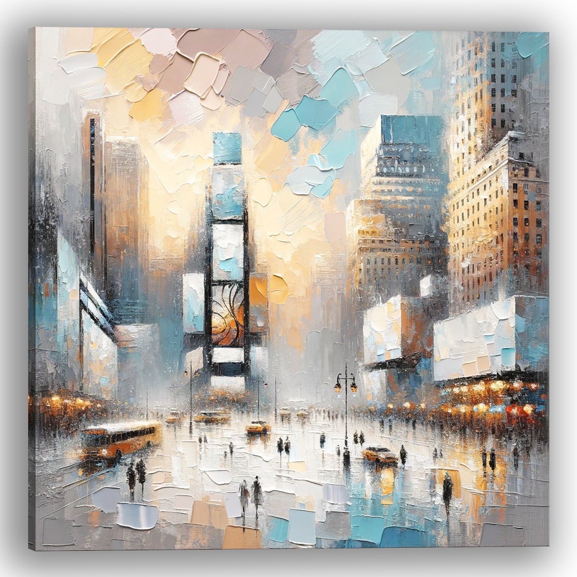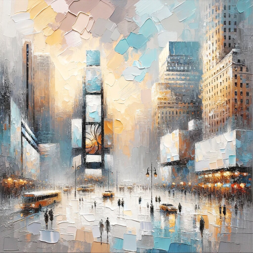 Captivate the essence of urban elegance with this exquisite hand-painted canvas art, showcasing a mesmerizing abstract cityscape. This unique piece features a high-impact impasto technique that adds a rich texture to the bustling city scene, giving it a tangible sense of depth and movement. The 30x30 inch artwork is a tapestry of reflective colors and bold strokes that mimic the vibrancy and dynamic nature of city life. As the light shifts across the room, so does the painting's mood, offering an ever-changing view that invites contemplation and conversation. This canvas isn't simply art; it's a statement piece that transforms any room into a gallery of modern sophistication. The wrapped canvas presents a seamless display, making it an ideal choice for those who appreciate art with a contemporary edge. It's a special creation for the urban soul, ready to bring the heartbeat of the metropolis into your home or office.