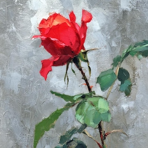 Celebrate timeless beauty with this original hand-painted oil painting of a single red rose. Rich palette knife textures and bold brushstrokes bring depth and elegance to the flower, set against a soft neutral background that highlights its vibrant petals. This striking floral artwork embodies love, passion, and sophistication—perfect for gifting or adding a romantic touch to your home.