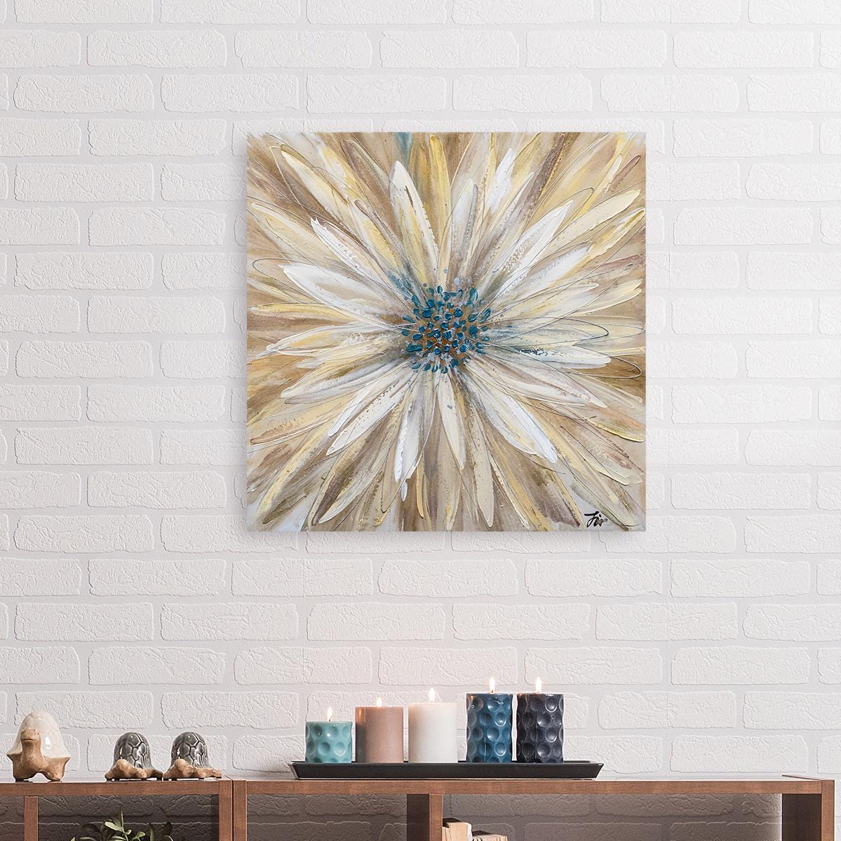 The bright yellow petals are skillfully scratched out by the artist using a painting knife in a fast and powerful way, while the smooth lines of the petals are formed by gentle arcs. This creates a rich, layered effect that doesn't look blurred or crowded, bringing the elegant and luxurious beauty of the flower to life.